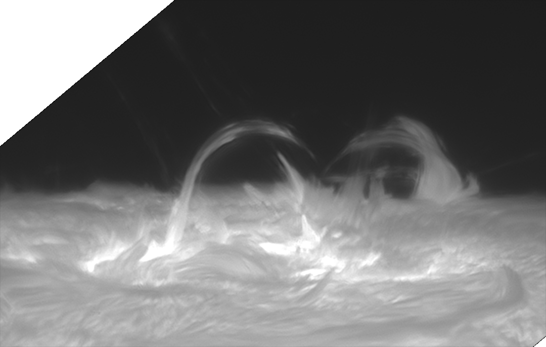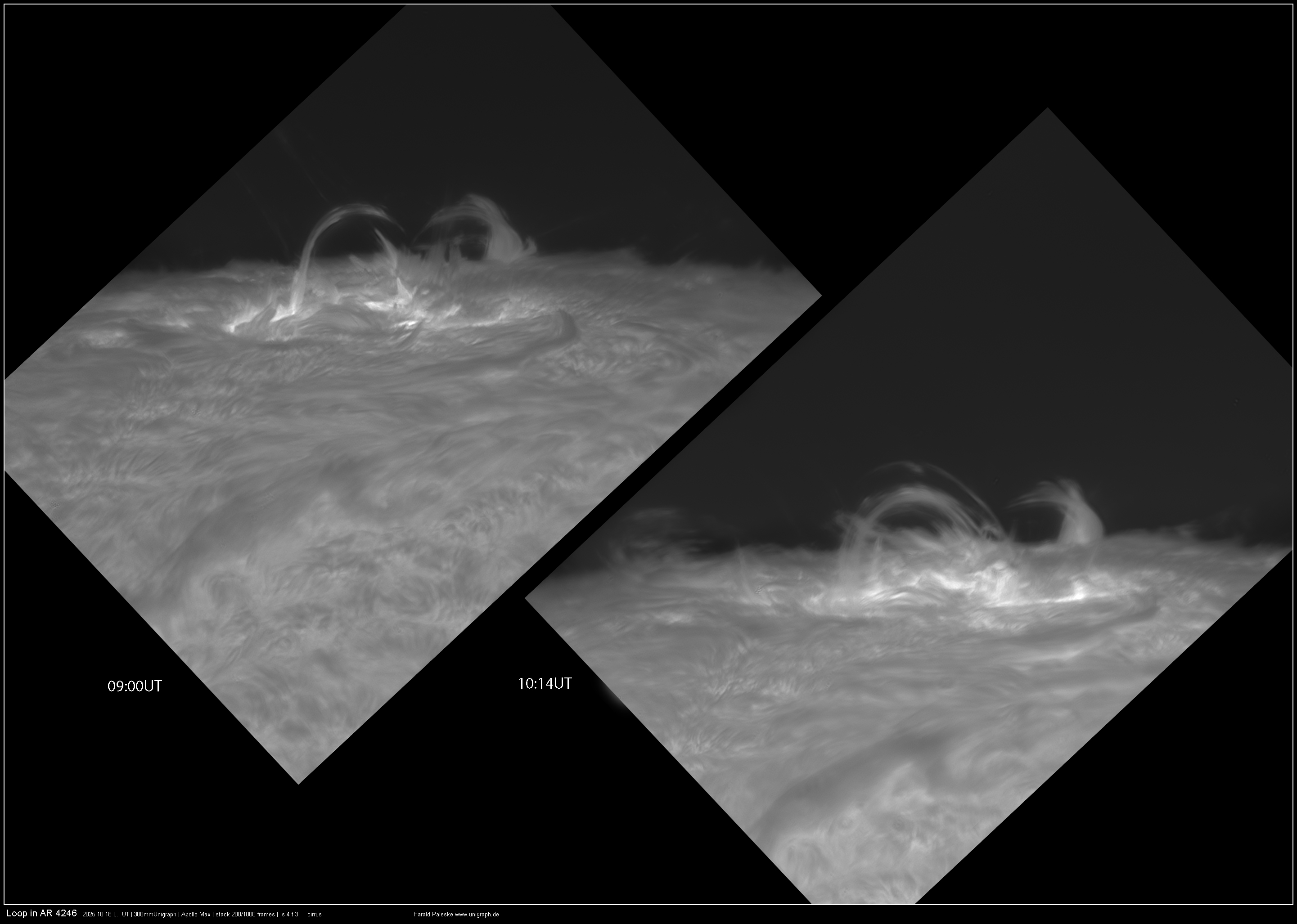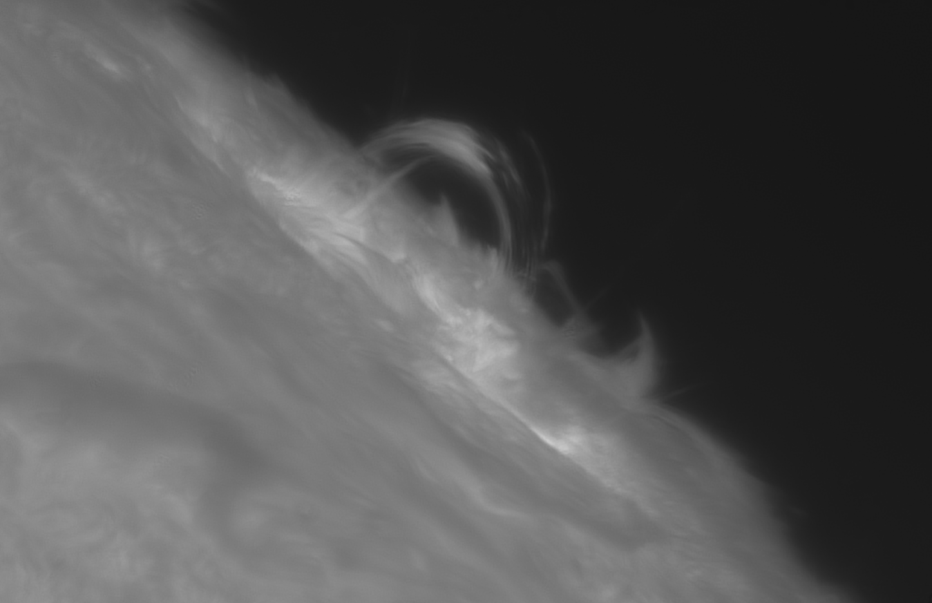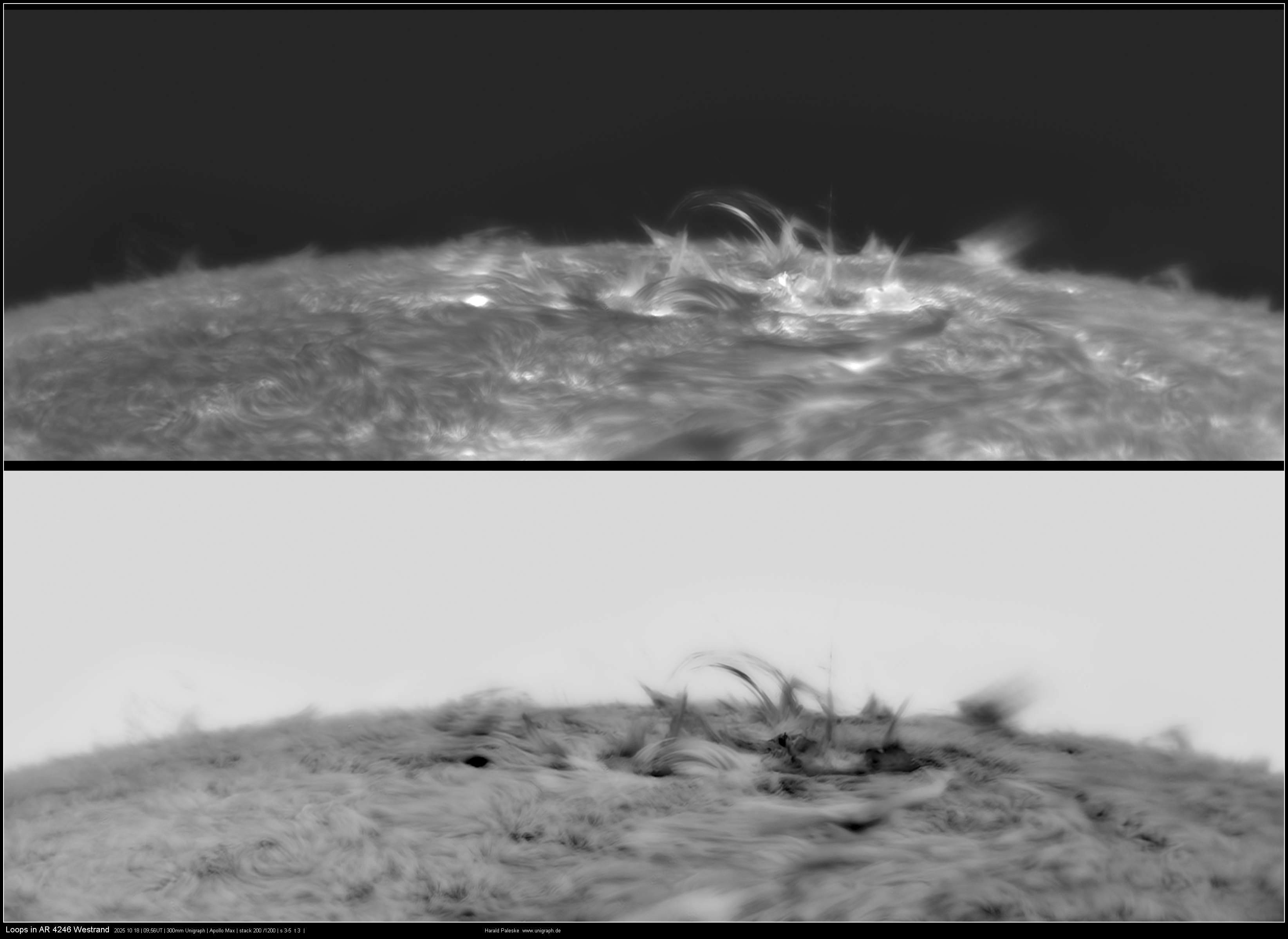 Bild 3 (10:12UT) Danach zog das Wetter zu. Interessant waren die deutlich ausgeprägten Loops. Die Forscher rätzeln noch wie dünn eigentlich diese Fäden sein können. Lt. Theorie markieren sie die Magnetfeldlinien. Manchmal sieht