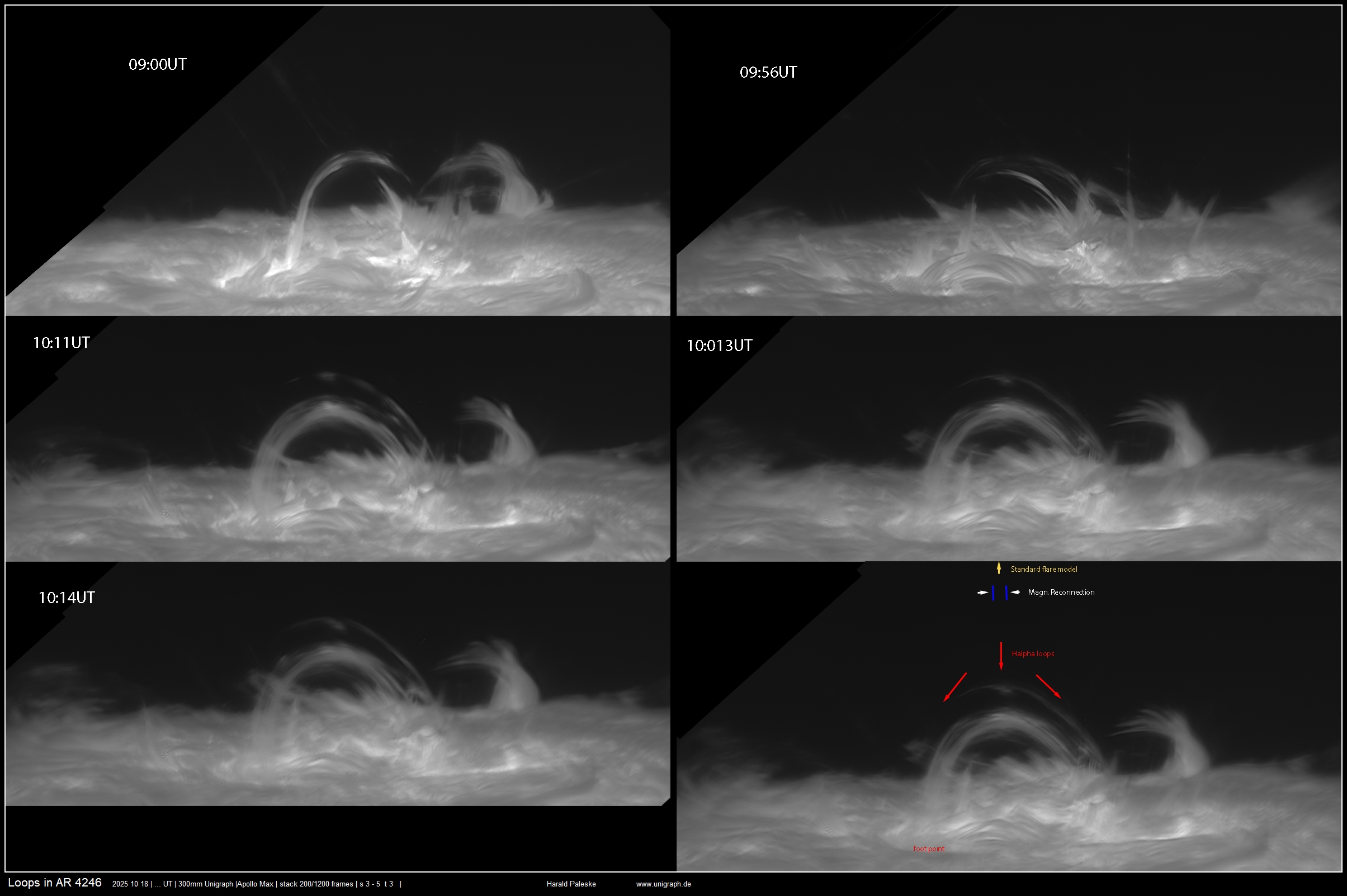 strömt das Gas in den Loops zur Chromosphäre zurück), nur im tiefen ultraviolett sichtbar (weil sehr heißes Gas). Auf den SDO Bildern (z.B. AIA 171) sieht man dann sehr schön die vielen hellen Schleifen über den dunklen Halphastrukturen.